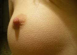 Девушка гуляя в лесу засветила свою большую грудь и побритую киску