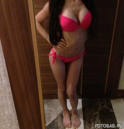 Стройная девушка с анальной пробкой в попке делает селфи перед зеркалом