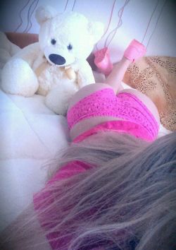 Стройная девушка с анальной пробкой в попке делает селфи перед зеркалом