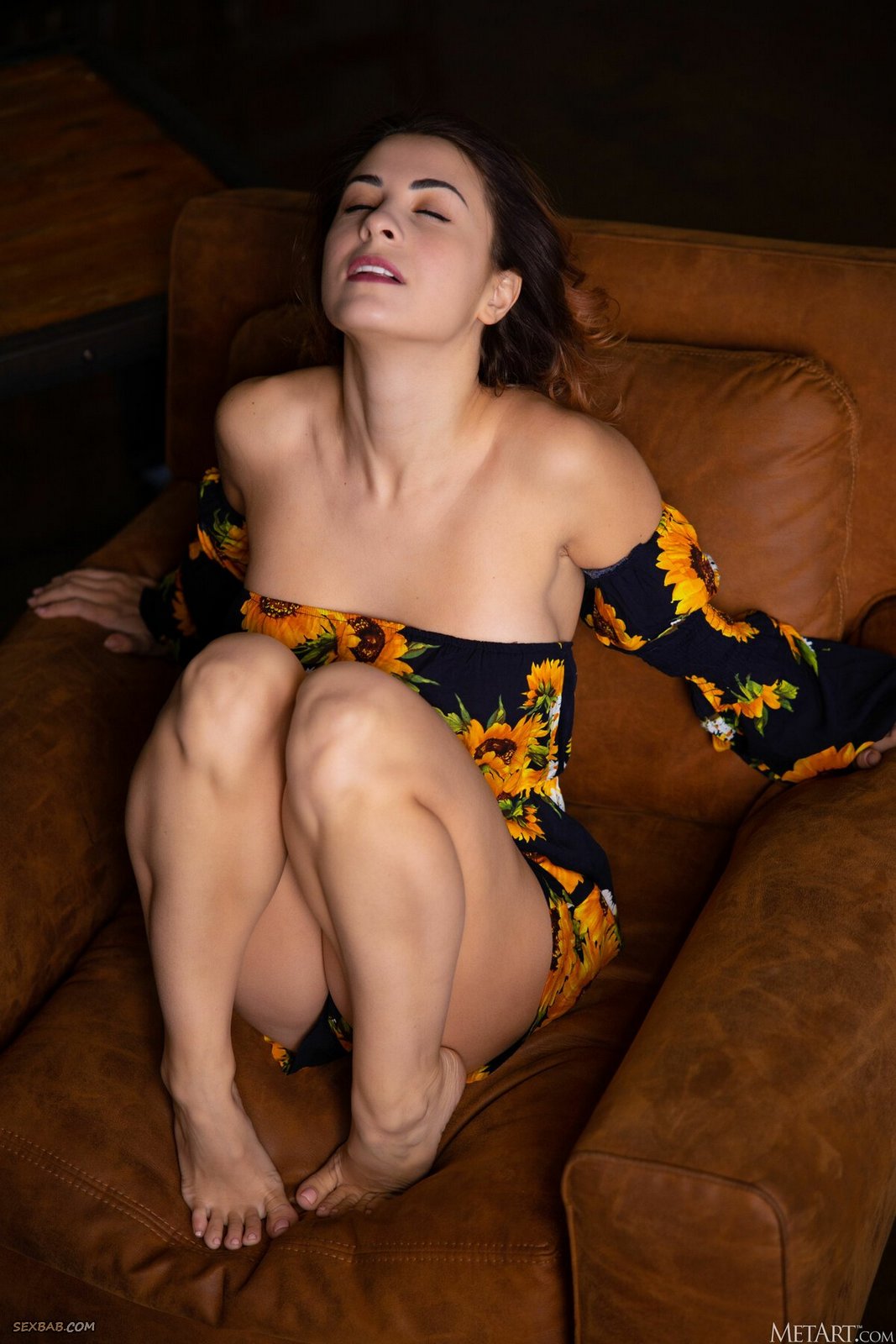 Описание: Эротично стянув с себя короткое платье и выставив на показ выдающиеся прелести, горячая дамочка с красивой подтянутой фигурой развратно позирует обнаженной в кресле, страстно извиваясь всем телом и с разных ракурсов засвечивая между ног свою бритую сочную письку с волосатым лобком.