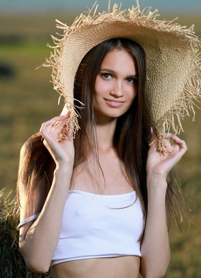 Описание: После тяжелого рабочего дня, уставшая тощая девица в майке расслабленно развалилась на стоге сена и бесстыже светит между ног своей голой бритой писькой в поле. Оголив перед камерой маленькие титечки, длинноногая брюнетка игриво вертит своей упругой попкой и не стесняется показать нам свои самые интимные места.