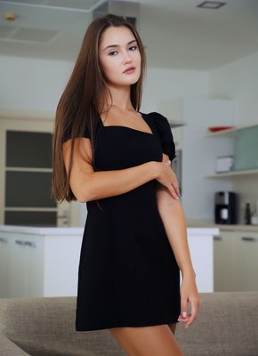 Описание: Кокетливо поправляя на себе очки, изящная дамочка в коротком платье без трусов соблазнительно раздвинула перед камерой свои стройные красивые ноги и во всей красе показала голую бритую письку. Постепенно раздевшись до гола, загорелая стройняшка с упругими сиськами принялась энергично позировать на диване и с разных ракурсов засвечивать свои самые интимные места.