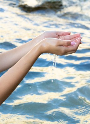 Мокрая блондиночка купается в море голышом