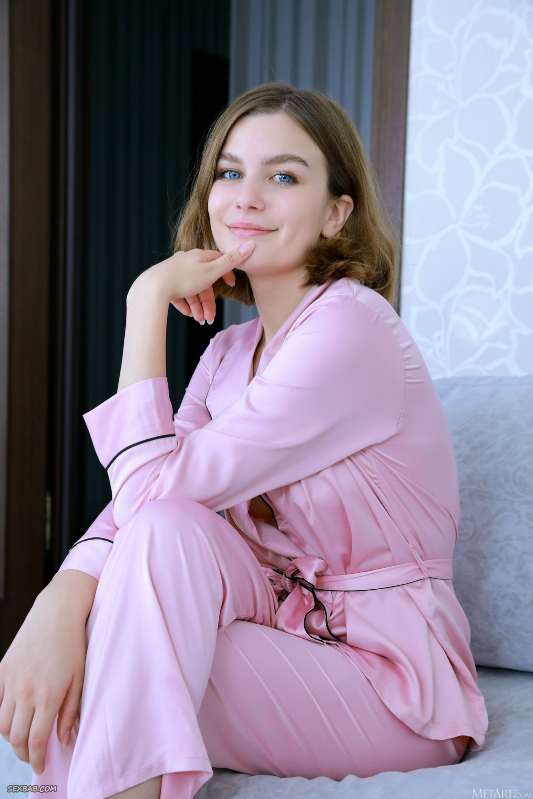 Описание: Эротично снимая с себя шелковую пижаму и параллельно засвечивая на камеру свои интимные места, голая куколка с красивой упругой грудью соблазнительно ложится на диван и, демонстрируя нам раскрытую промежность с бритой пиздой, позволяет нам делать с ней все, что вздумается.