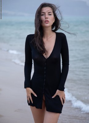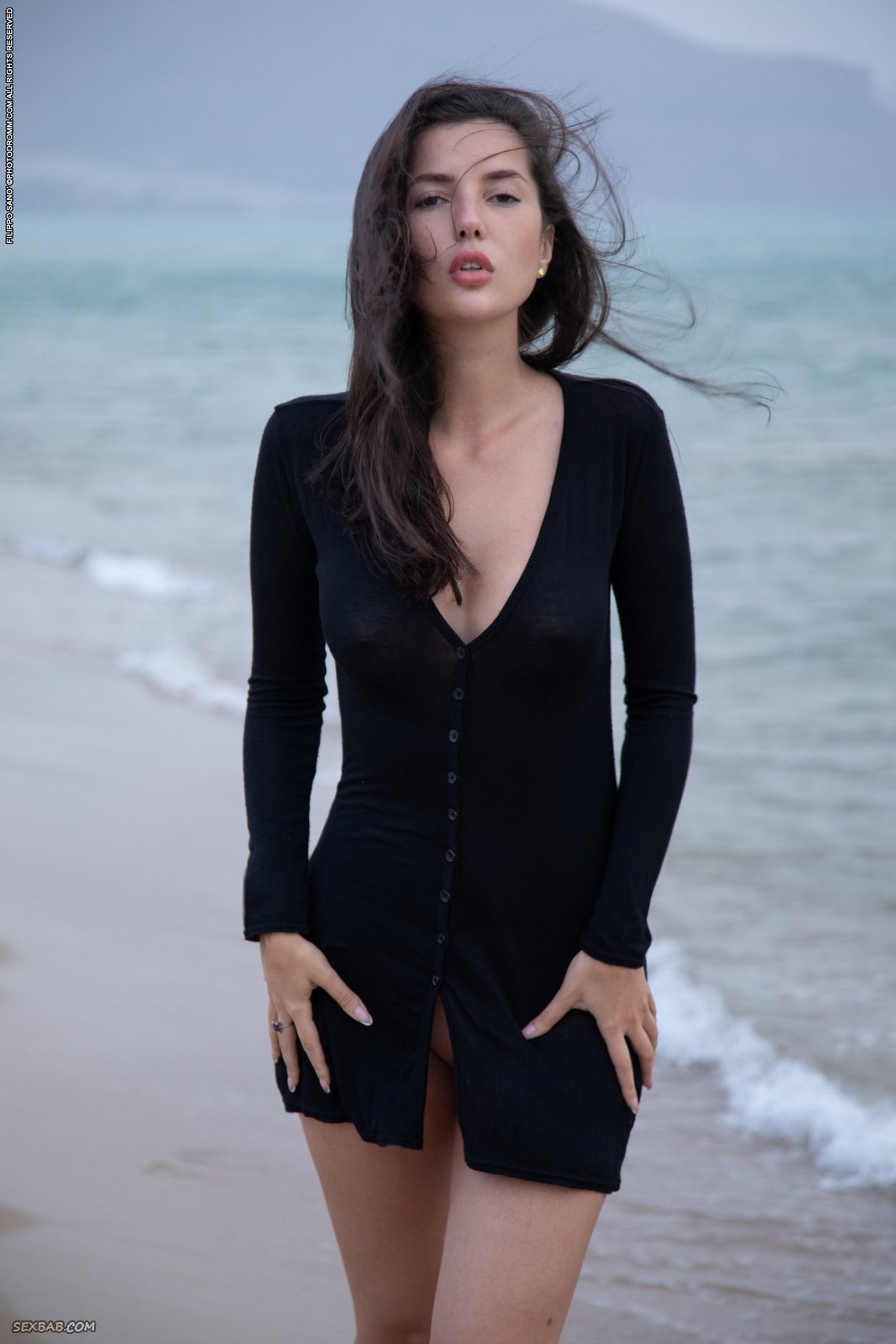Описание: Решив похвастаться перед всеми своими красивыми упругими сиськами, горячая телка медленно снимает с себя всю одежду и страстно позирует на пляже голышом. Расслабленно лежа на песке и наслаждаясь накатывающими на нее волнами, сексуальная женщина с возбуждающими формами соблазнительно вытянула свои красивые ноги и мельком засветила бритый лобок.