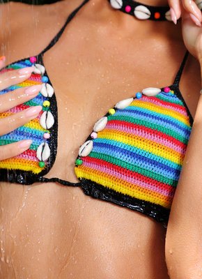 Сексуальная мокрая телка лежит на шезлонге