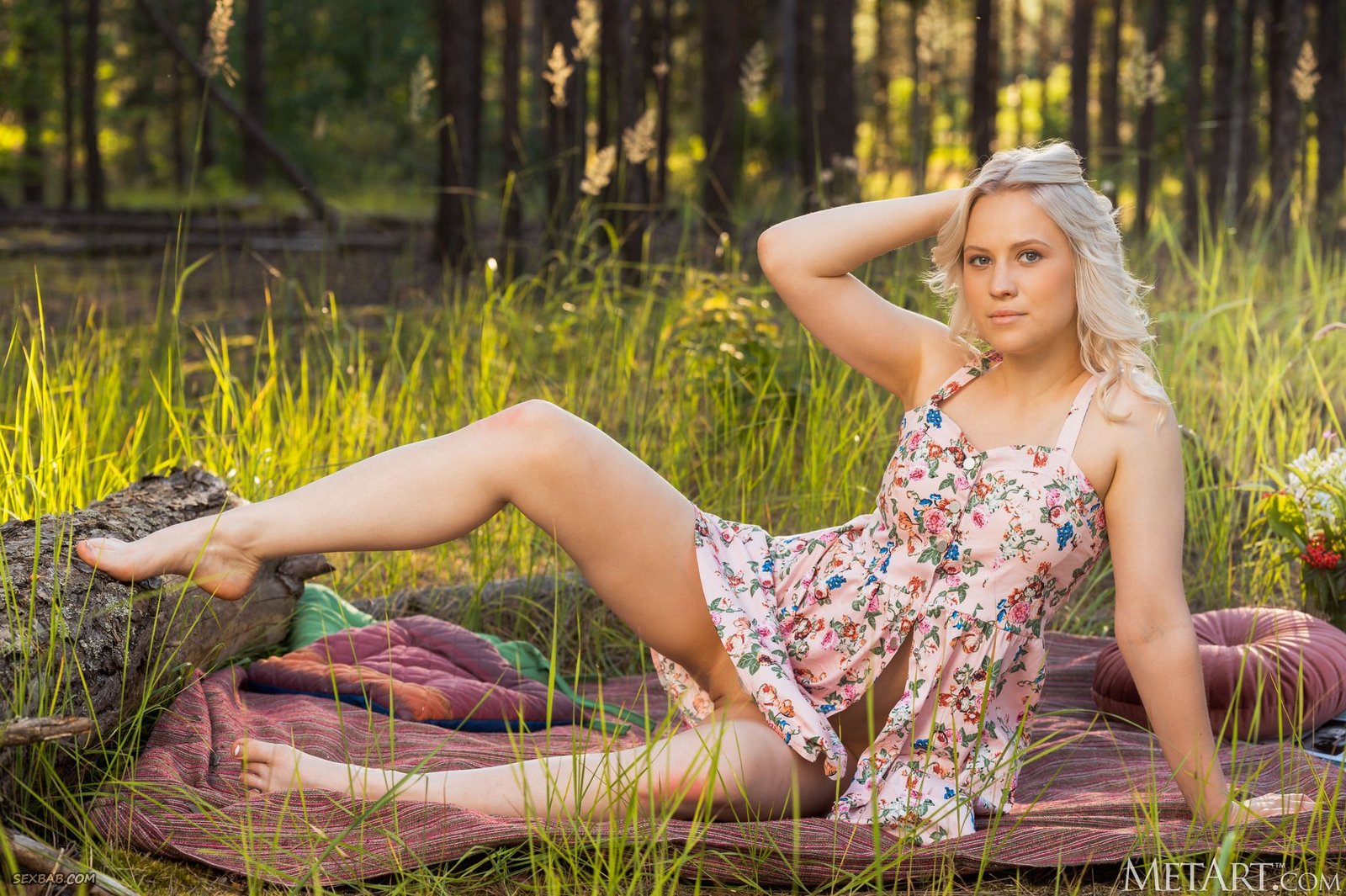 Описание: Быстро избавившись от всей одежды, обнаженная девушка расслабленно отдыхает на природе и наслаждается теплым ветром на своей нежной чувствительной коже. Соблазнительная блондиночка с маленькой грудью развратно позирует всем телом и, лежа на земле, с разных ракурсов бесстыже выпячивая на камеру свою голую бритую промежность с розовой сладкой киской.