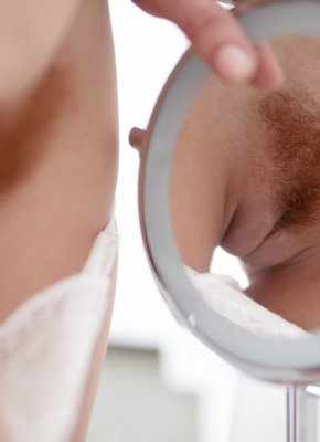 Рыжая стерва оголила волосатый лобок
