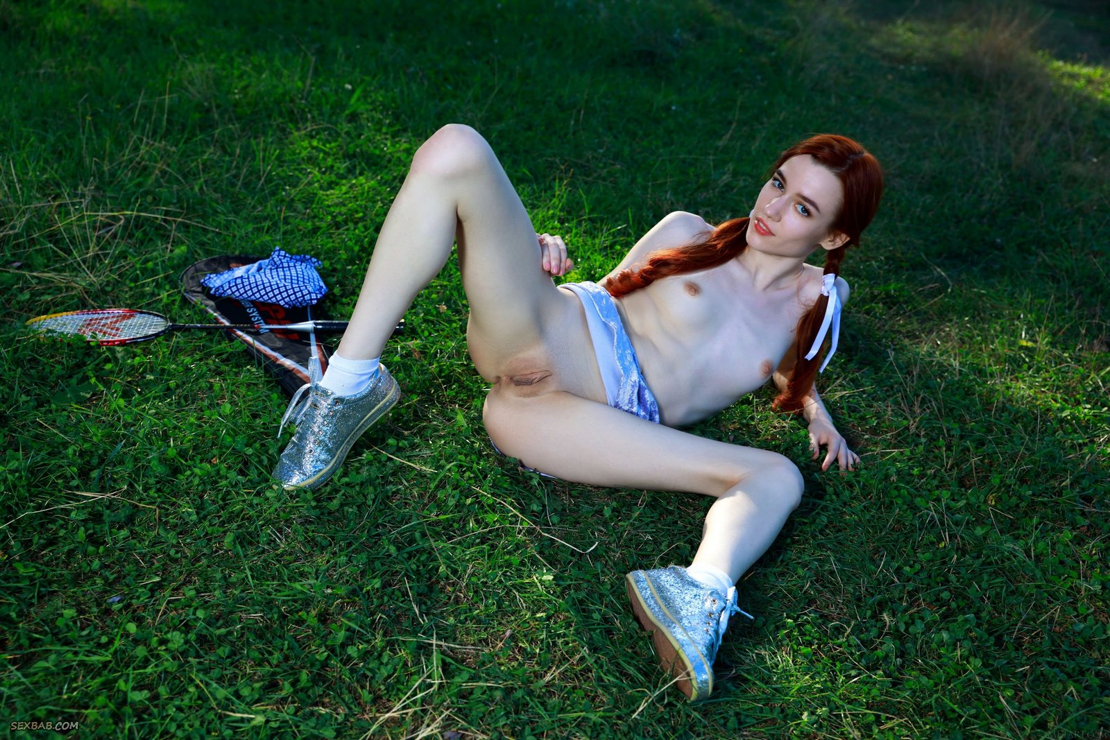 Описание: Выбравшись на природу, рыжая худышка красуется перед нами в платье без трусов, постоянно задирая подол. Девушка охотно демонстрирует свою притягательную киску с тёмными половыми губками, а между делом выставляет на показ и маленькие титьки с аккуратными сосочками.