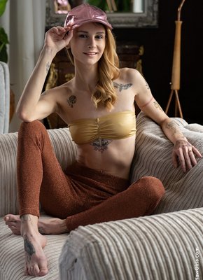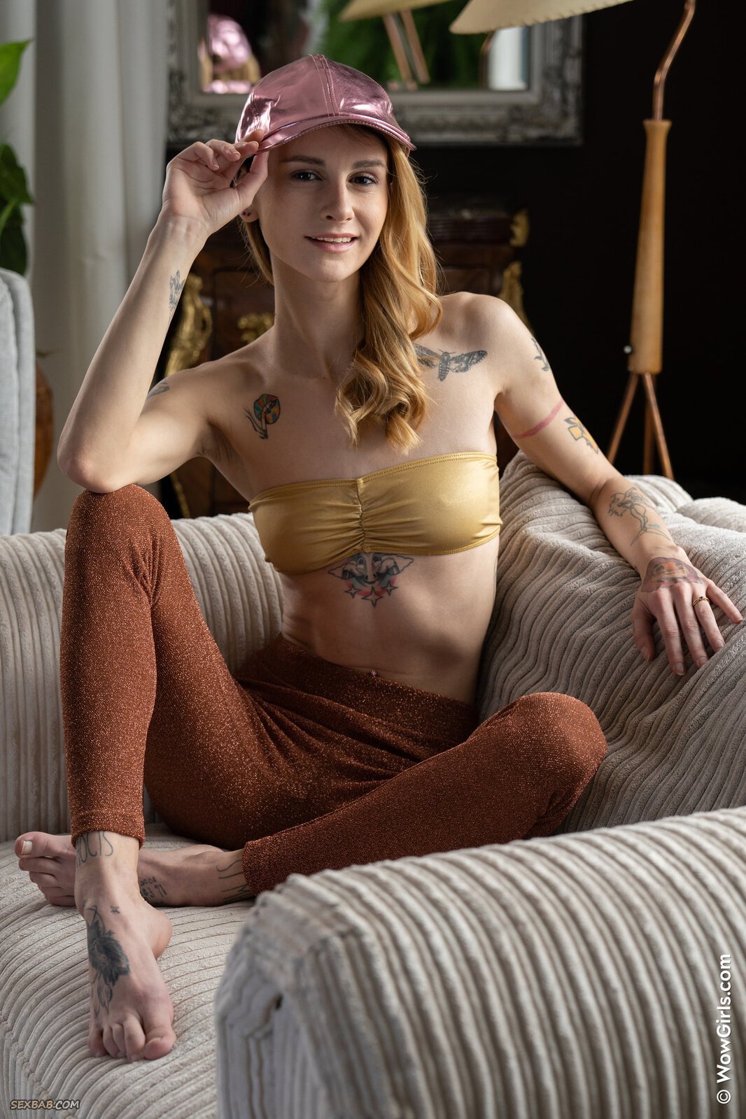 Описание: Молодая худая рыжуха с яркими татуировками постепенно разделась до гола, выставив на показ свою бритую сочную письку с заросшим мохнатым лобком. Тощая шалунья вовсю светит своими миниатюрными титьками, а затем высоко задирает маленькую упругую задницу и раскрывает перед камерой голую промежность.