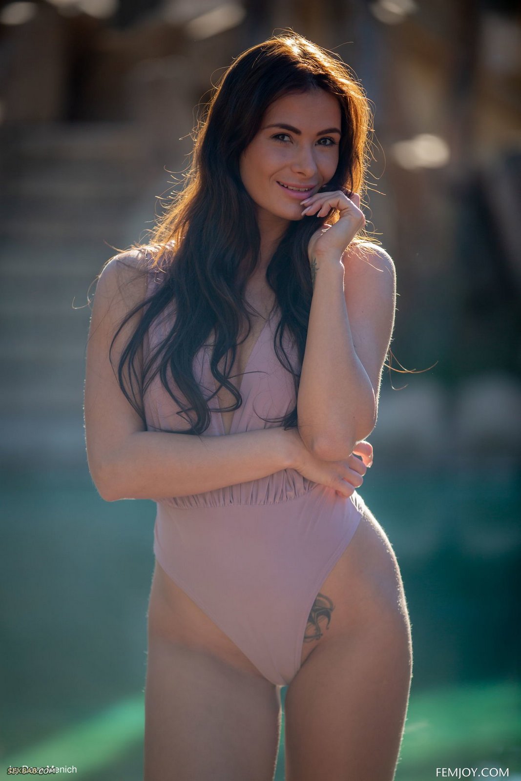 Описание: Горячая развратная телка с сочной мягкой задницей медленно сняла с себя обтягивающий купальник и полностью оголила перед камерой свои соблазнительные прелести. Жгучая брюнетка с натуральными сиськами чувственно позирует всем телом у бассейна и открыто демонстрирует свою голую промежность с бритой сочной писькой крупным планом.