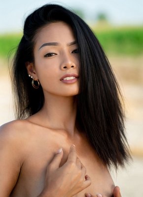 Описание: Уединившись на природе с фотографом, красивая молодая азиатка со стройной фигуркой эротично позирует в трусиках и легком халатике. В какой-то момент сексуальная девушка с маленькими сиськами все же скидывает с себя все лишнее и соблазнительней всего демонстрирует возбуждающую бритую письку с тощей попкой.