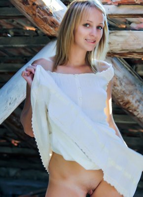 Описание: Спрятавшись в своем тайном месте, деревенская простушка в белом платье без трусов игриво задирает короткую юбку и показывает на камеру свою бритую письку. Раздевшись до гола, похотливая девица с натуральными титьками пытается красиво позировать и демонстрировать свои интимные места.