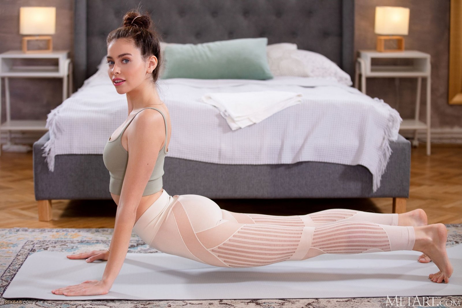 Гибкая телка с волосатым лобком занимается йогой