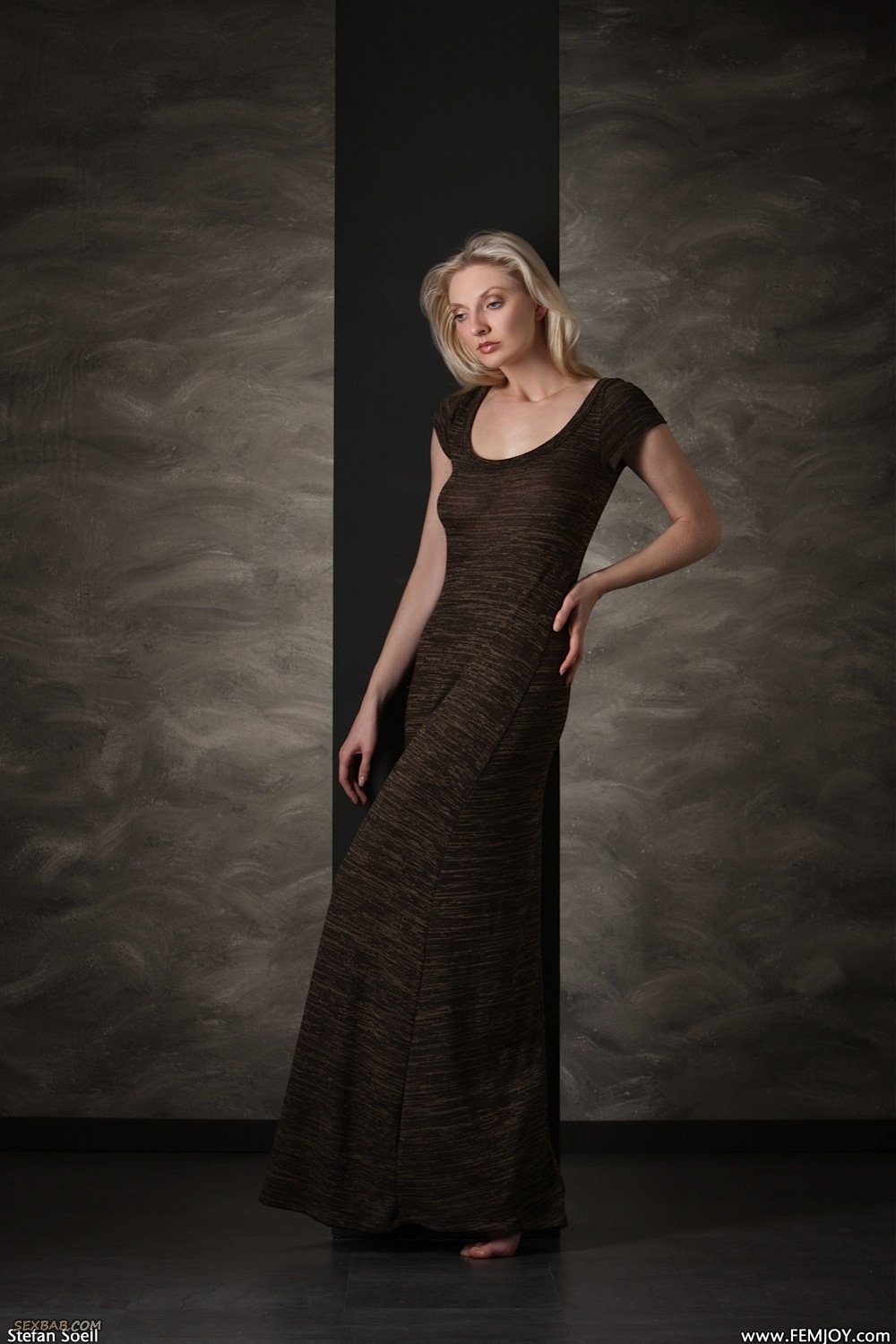 Описание: Скинув с себя длинное платье, шикарная и полностью голая девушка высокого роста с сексуальной фигурой принимается грациозно позировать. Ставя руки на талию и поднимая вверх, модель со светлыми локонами особенно подробно демонстрировала сочную задницу с упругими сиськами и бритую письку.