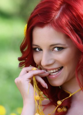 Описание: Страстная рыжая девушка красиво позирует абсолютно голой на природе, удобно устроившись в высокой траве. Яркая красотка с натуральными упругими титьками соблазнительно принимает разные откровенные позы, а затем похотливо начала подставлять свою аппетитную попку на камеру, демонстрируя крупным планом свою бритую сладкую киску с мохнатым лобком.