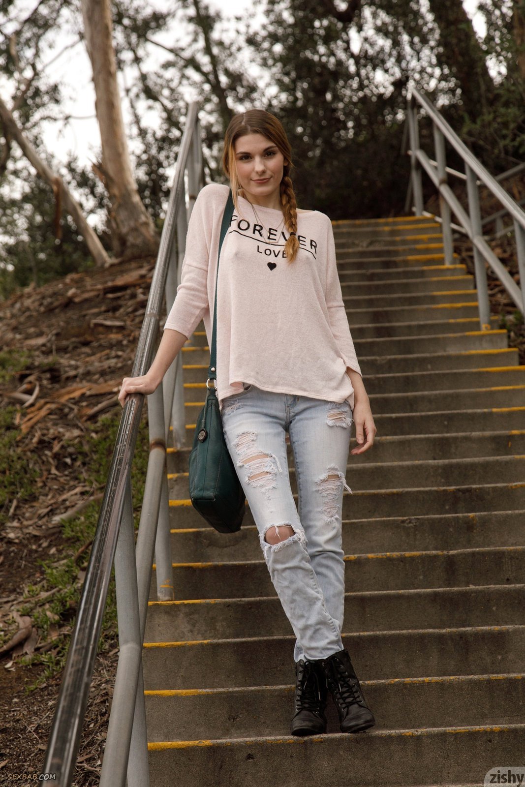 Описание: Гуляя на улице, привлекательная студентка в джинсах и кофте, в какой-то момент решает оголить красивую натуральную грудь с возбужденными сосочками. Сделав это, молодая девушка отправилась в туалет, где устроившись рядом с раковиной так же продемонстрировала сексуальную промежность в трусах.