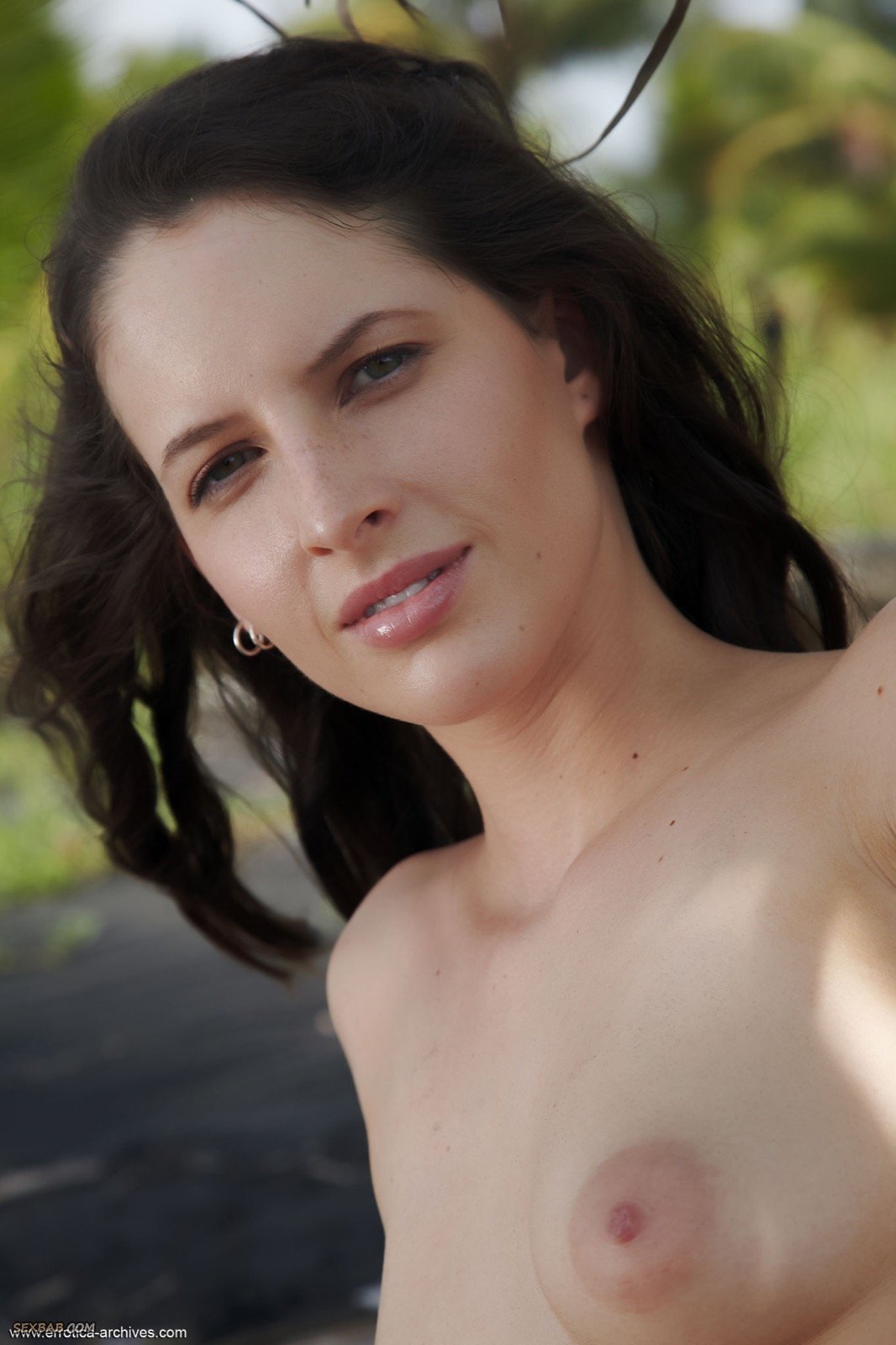Описание: Расположившись рядом с пальмой на тропическом острове, голая брюнетка с худенькой фигурой, чередует разные возбуждающие ракурсы. Вставая на коленки и присаживаясь на сухую ветку, сексуальная девушка особенно яростно показывает небольшие сиськи и сексуальную бритую письку.