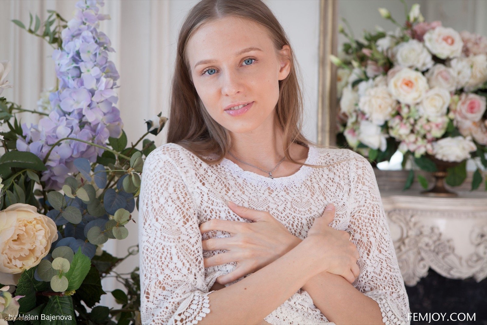 Описание: Начав эротично позировать в нежной обстановке и приятном интерьере, желанная красотка в белых носочках и трусиках с кружевной кофточкой часто меняет разные ракурсы и довольно скоро показывает упругую попку, для этого раздеваясь до гола и прогибаясь раком на диване. А поглаживая себя руками, сексуальная стройняшка с маленькой грудью позволила насладиться её киской.