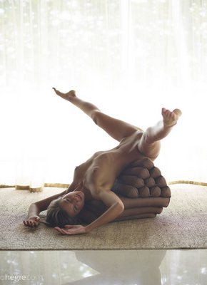 Описание: Устроившись на полу на мягких подушках, русская модель с худощавым телом и маленькими сиськами широко раздвинула длинные ноги, позволив взглянуть на её голую письку. Прогибаясь же раком, красавица оттопыривала сочную попку, а ложась на спину она задирала ножки вверх засвечивала бритую письку с новых ракурсов, при этом обхватывая ягодицы руками.