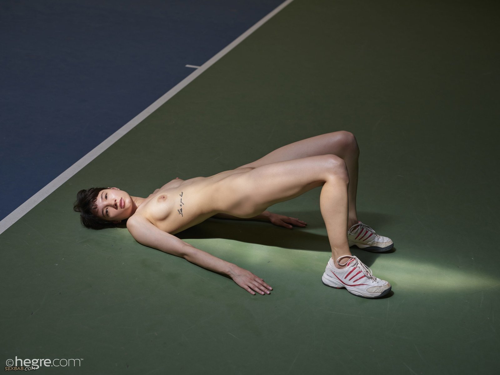 Описание: Скинув с себя все лишнее, голая теннисистка с радостью принимается позировать перед фотокамерой на корте, обнажая худую, но очень привлекательную попку с упругими ягодицами. А часто прогибаясь раком и выгибая спинку, сексуальная и весьма красивая девушка так же демонстрировала и бритую письку.