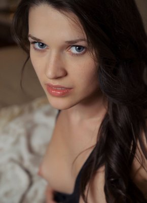 Описание: Молодая длинноволосая и невероятно красивая девица, устроившись у себя дома на кожаном диване, начинает эротично позировать без трусиков в майке, в процессе и вовсе раздеваясь догола. Стараясь чередовать разные позы, стройняшка подробно демонстрировала натуральные сиськи и бритую возбуждающую письку.