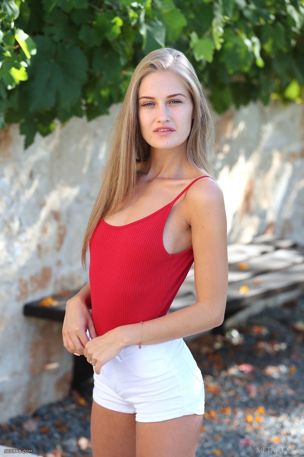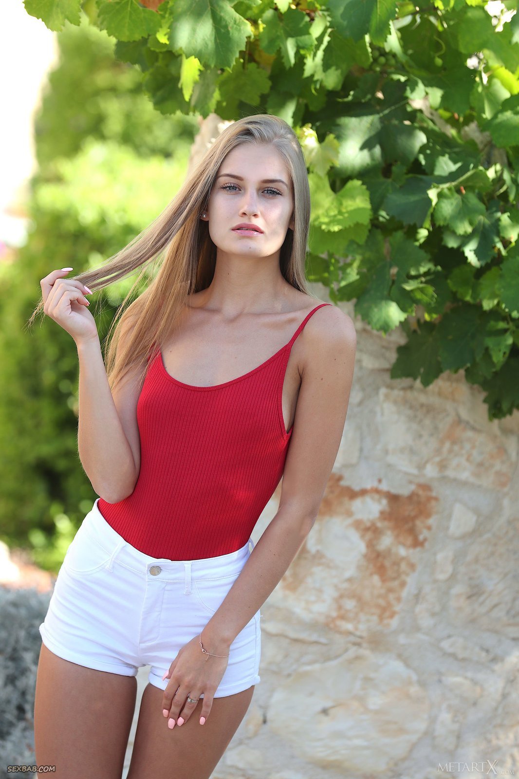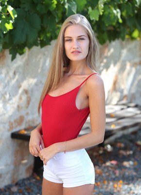 Описание: Наслаждаясь летним днем на улице, худая блондинка начинает эротично позировать и снимать короткие шорты с боди, ощущая удовольствие и возбуждение. Оголившись, сексуальная милашка демонстрирует плоские сиськи и нежно трогает пальцами бритую письку с прической на лобке.