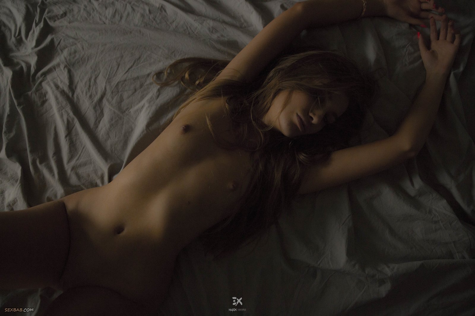 Описание: Устроив в тёмной спальне эротическую фото сессию, располагаясь то на полу, то на кровати, молодая красотка в кружевном боди медленно раздевается и демонстрирует сексуальное тело. Наслаждаясь процессом, стройняшка с маленькими сиськами и торчащими сосочками подробнее всего засвечивала бритую письку с гладким лобком.