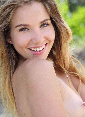 Описание: Молодая миленькая красавица с очень маленькой грудью, широко улыбаясь и позируя на песке уединённого пляжа, скидывает рубашку надетую на голое тело и демонстрирует нам свои прелести, стараясь при этом принимать самые разные позы. Таким образом, помимо титек, блондинка смогла продемонстрировать попку с гладко выбритой писькой.