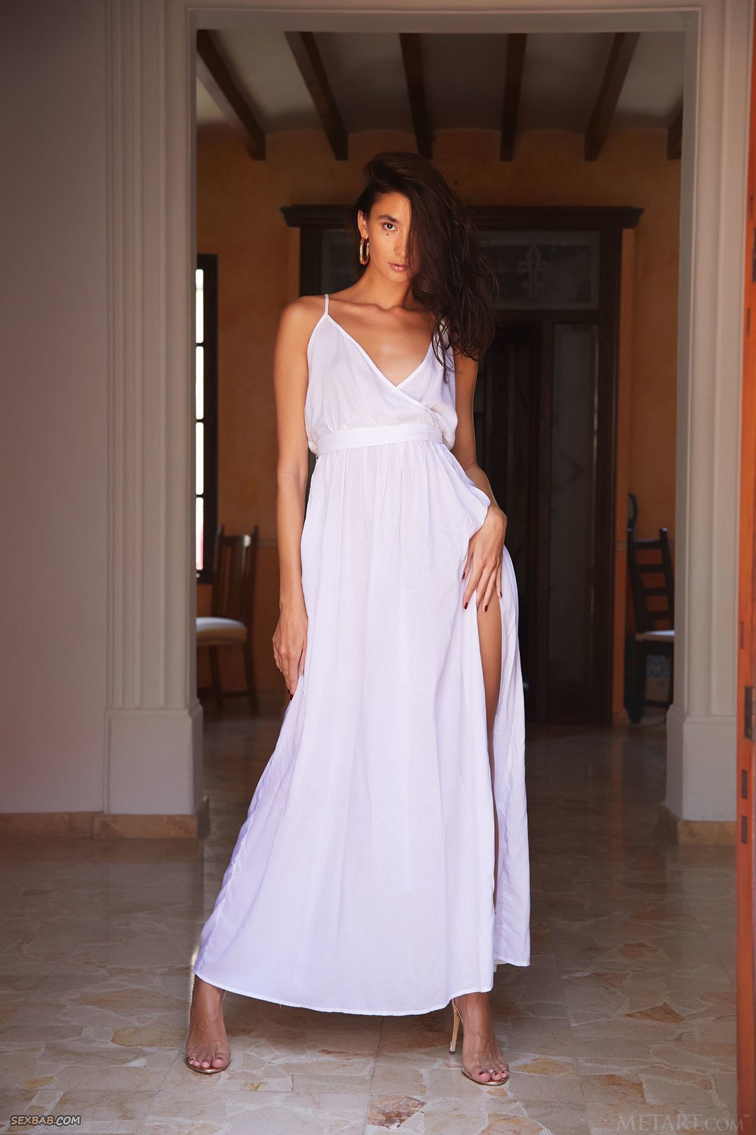 Описание: Привлекательная и достаточно худенькая высокая девушка в длинном белом платье, грациозно позируя в процессе начинает медленно раздеваться, засвечивая сексуальное тело, особенно акцентируя внимание на плоских сиськах с торчащими сосочками. В будущем крошка так же присаживалась на корточки и раздвигая ножки выставляла волосатый лобок с бритой писькой.