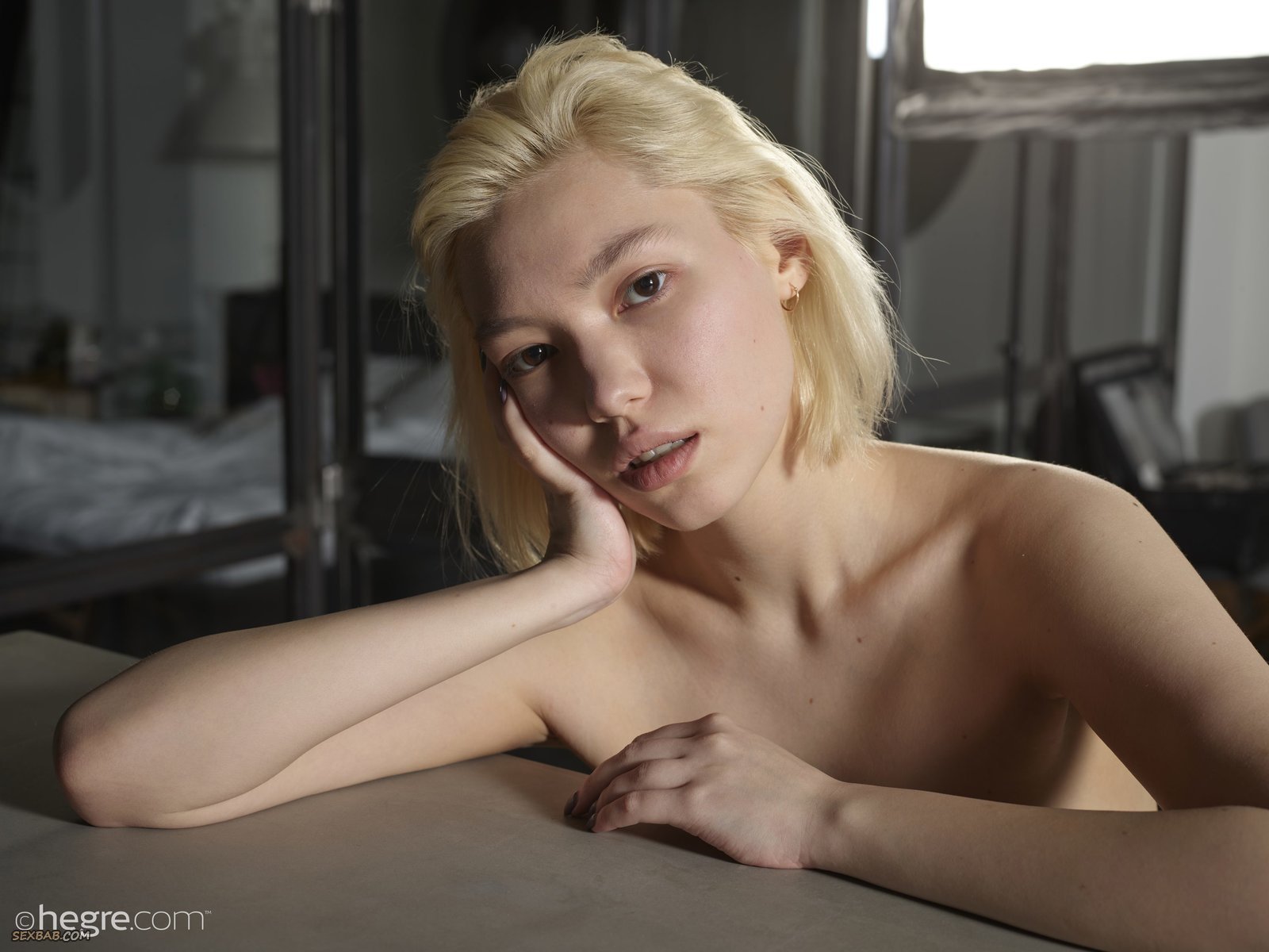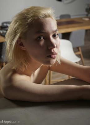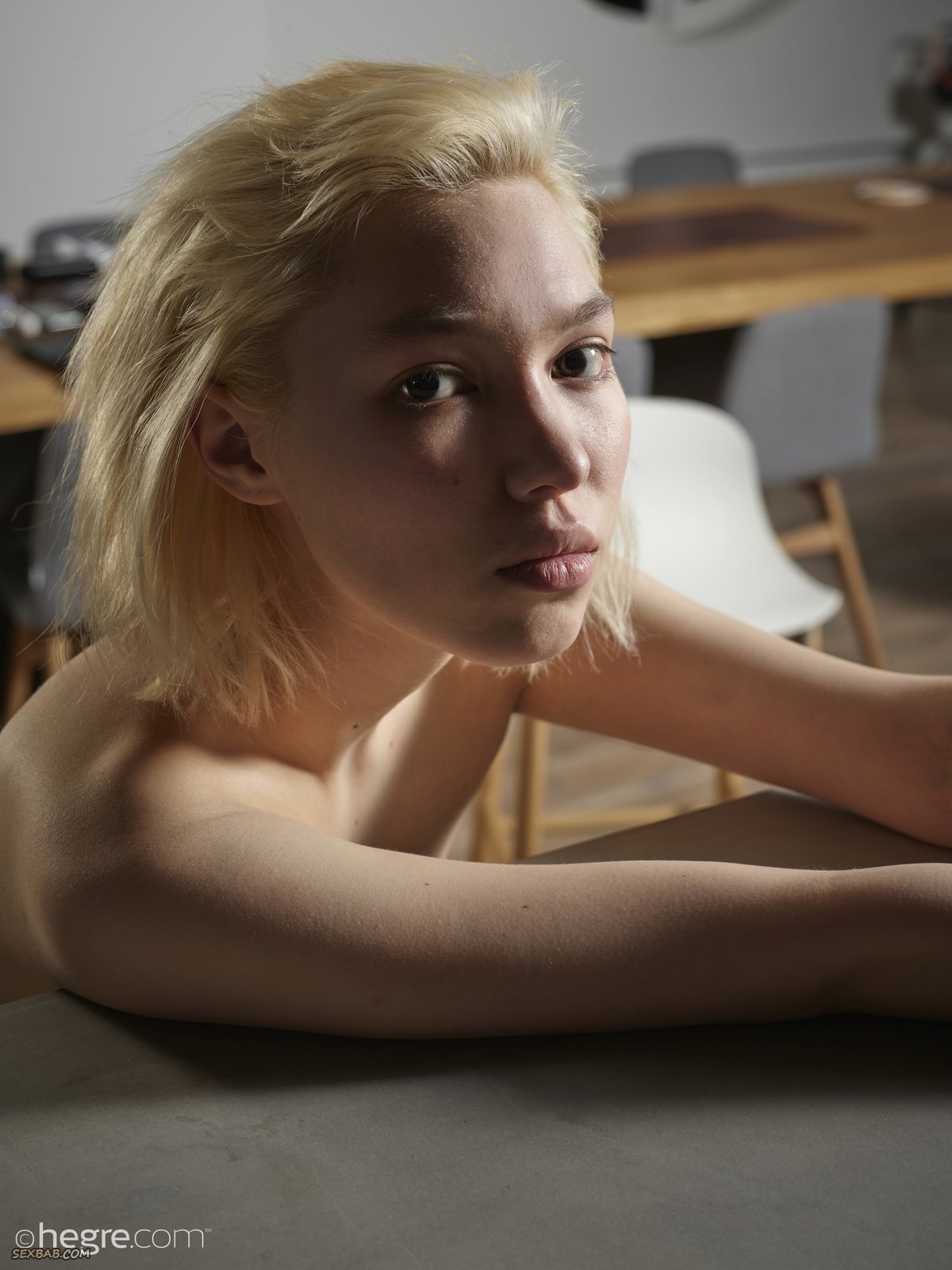 Описание: Симпатичная белобрысая азиатка с тонкой талией, устроившись на стуле и повернувшись спиной акцентирует внимание на сексуальной обнаженной жопе, грациозно оттопыривая её перед фотокамерой. Получая удовольствие от съёмки, стройная девушка так же в процессе немного засвечивала бритую письку и маленькие сиськи.