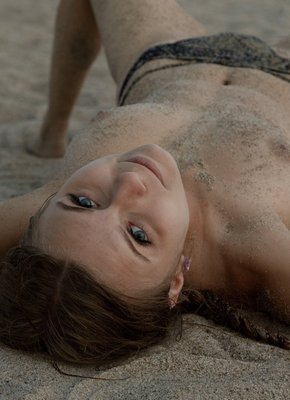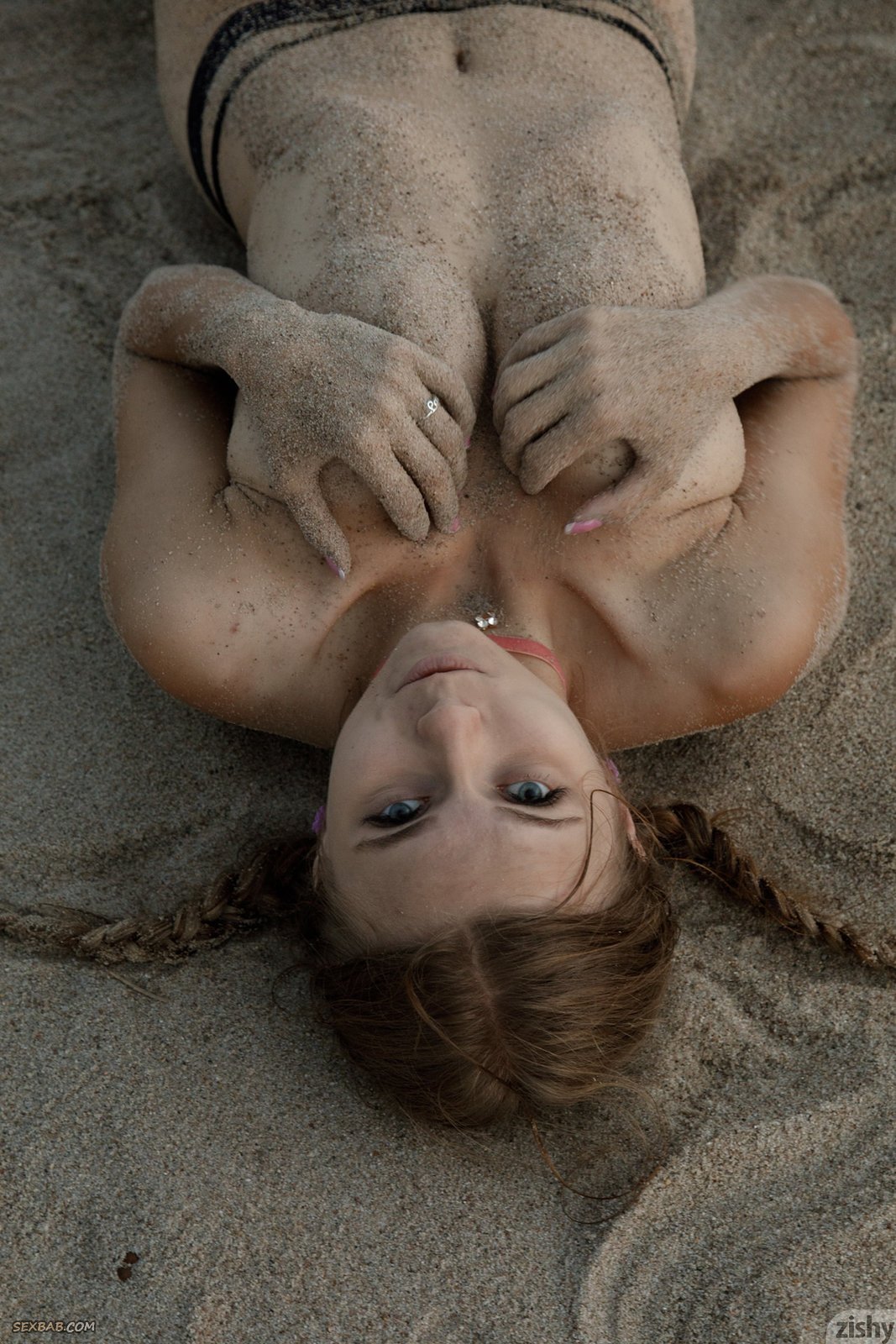 Описание: Очаровательная молодая девушка, скинув трусики на пляже, начинает позировать голая кувыркаясь при этом в песке, показывая сексуальное тело с разных ракурсов. Засветив натуральные сиськи, крошка переворачивается на животик и выставляет на показ сочную упругую попку, а так же с этого ракурса можно было рассмотреть бритую и немного грязную письку.