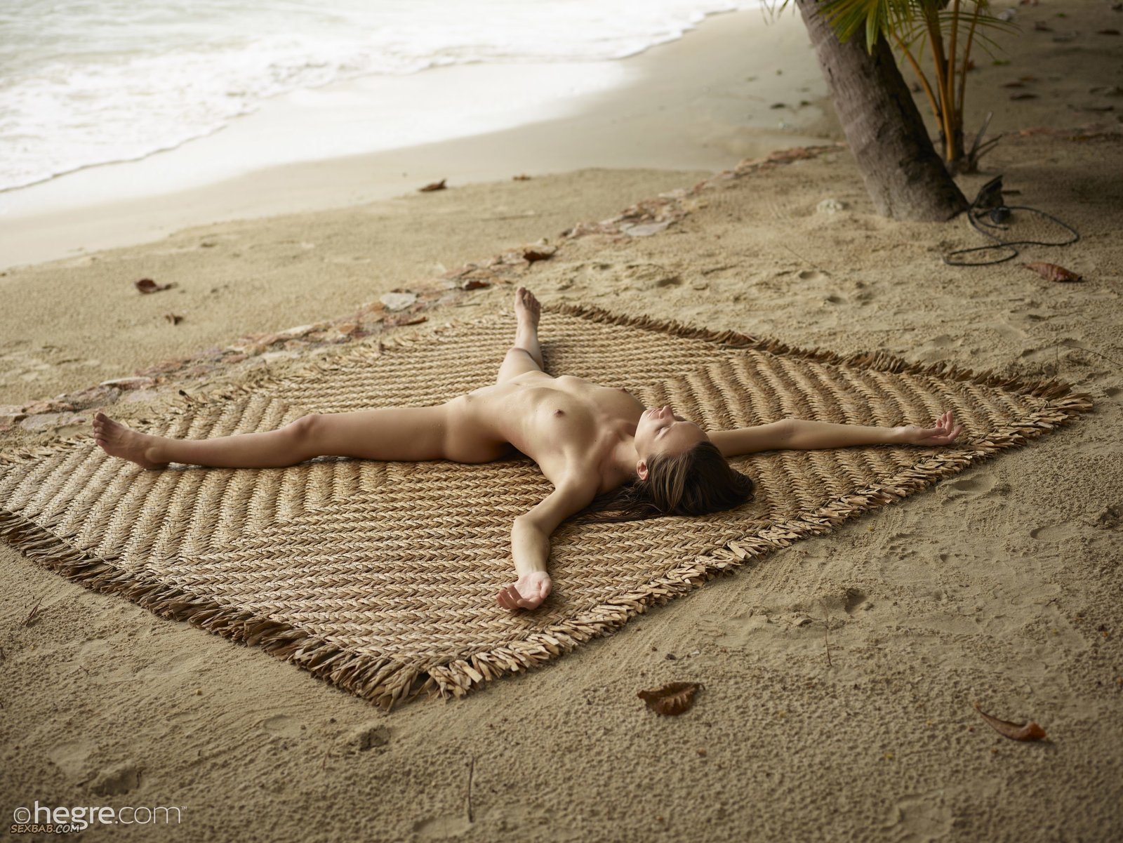 Описание: Лежа на необычной подстилке, голенькая и достаточно худенькая девица широко раздвигает ножки и закидывает руки за голову, позируя и ощущая удовольствие на берегу моря. В будущем молоденькая девушка встает на коленки и более подробно демонстрирует маленькие сиськи с возбужденными сосочками и плоский животик с гладеньким лобком и бритой писькой.