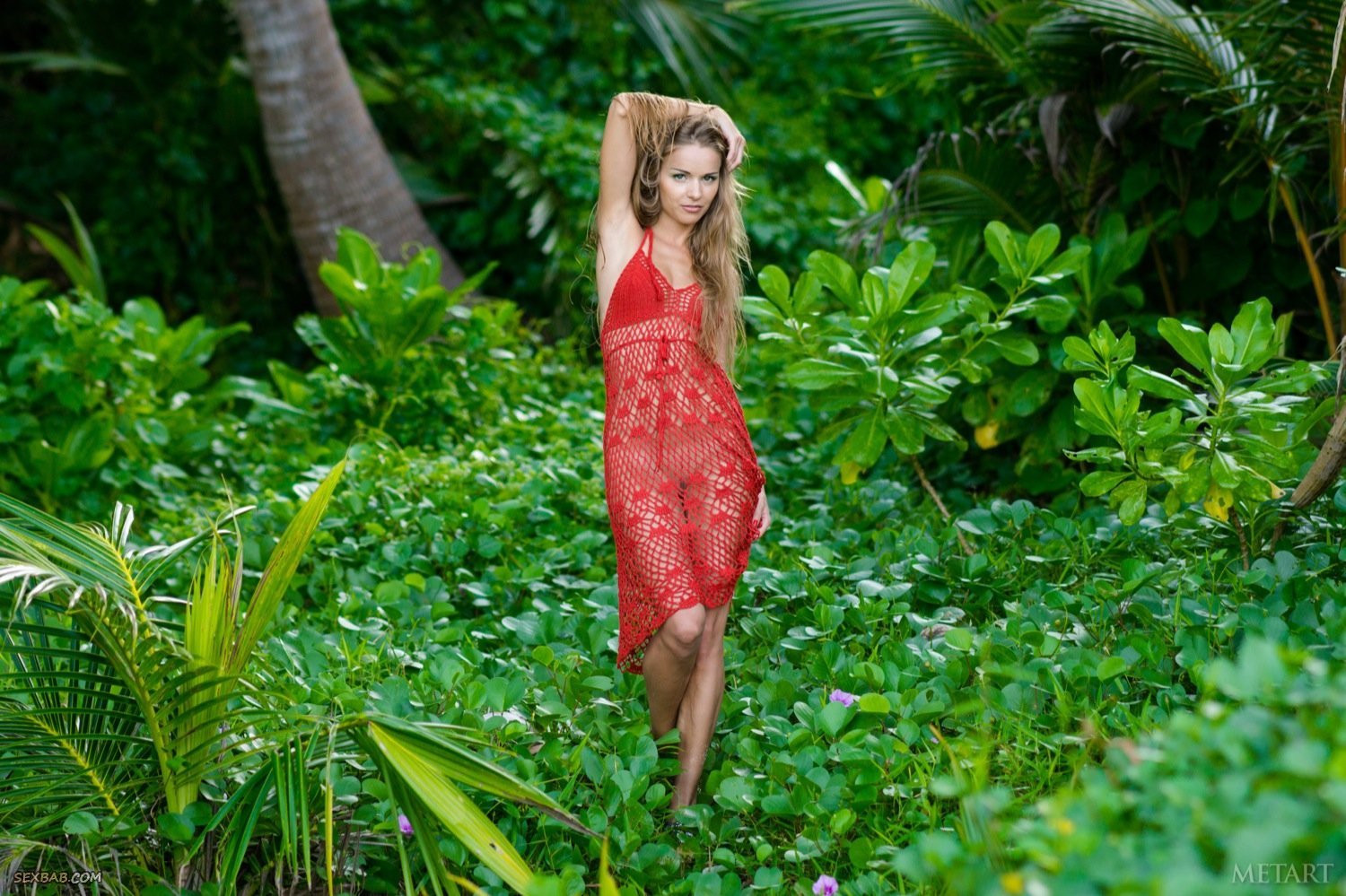 Описание: Привлекательная и совершенно голая, невероятно сексуальная туристка эротично прогуливается по пляжу в тропической стране и возбуждающе позирует там перед фотографом, порой наряжаясь в полупрозрачное кружевное платье. В процессе съёмки, светловолосая красотка с маленькой грудью смело продемонстрировала бритую киску и прочие прелести.