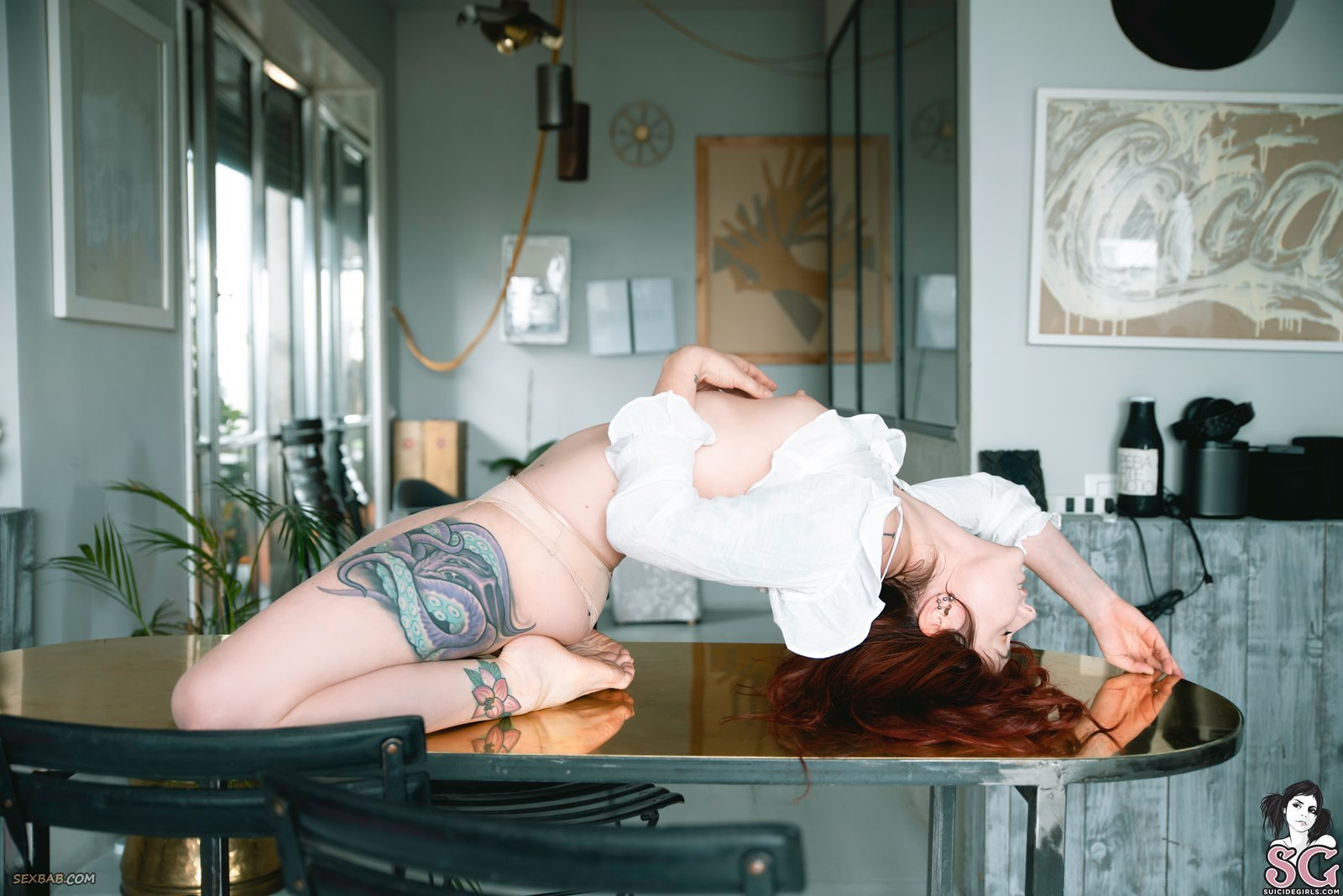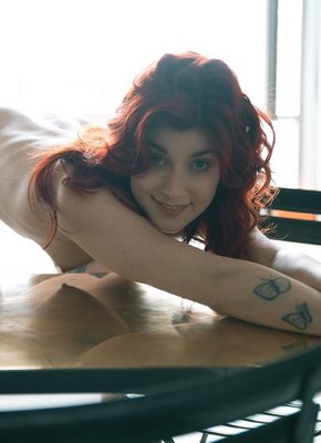 Описание: Валяясь на столе и меняя максимально возбуждающие ракурсы, красотка с татуировками особенно часто оттопыривала сексуальную жопу одетую в трусики. Послушно исполняя все просьбы профессионального фотографа, уже весьма заведенная девушка порой намеревалась стянуть с себя блузку, немного обнажая маленькие сиськи.