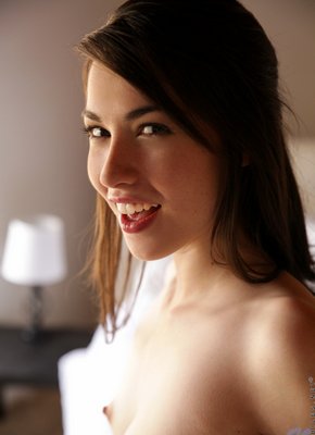 Описание: Решившись на откровенную съёмку у себя дома в спальне и позируя в трусиках с лифчиком, молодая красавица с милой улыбкой, в дальнейшем все же полностью оголившись, поворачивается сочной и весьма привлекательной попой. А в какой-то момент, тощая девушка с плоской грудью располагается на кровати и показывает бритую письку.