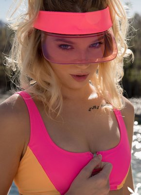 Описание: В очередной раз журнал Плейбой радует нас соблазнительными снимками обнажённой модели и сегодня это очаровательная блондинка с натуральной грудью среднего размера. Красавица снимает с себя купальник и голая позволяет понаблюдать за тем как она нежится у бассейна, выставляя на показ свои прелести.