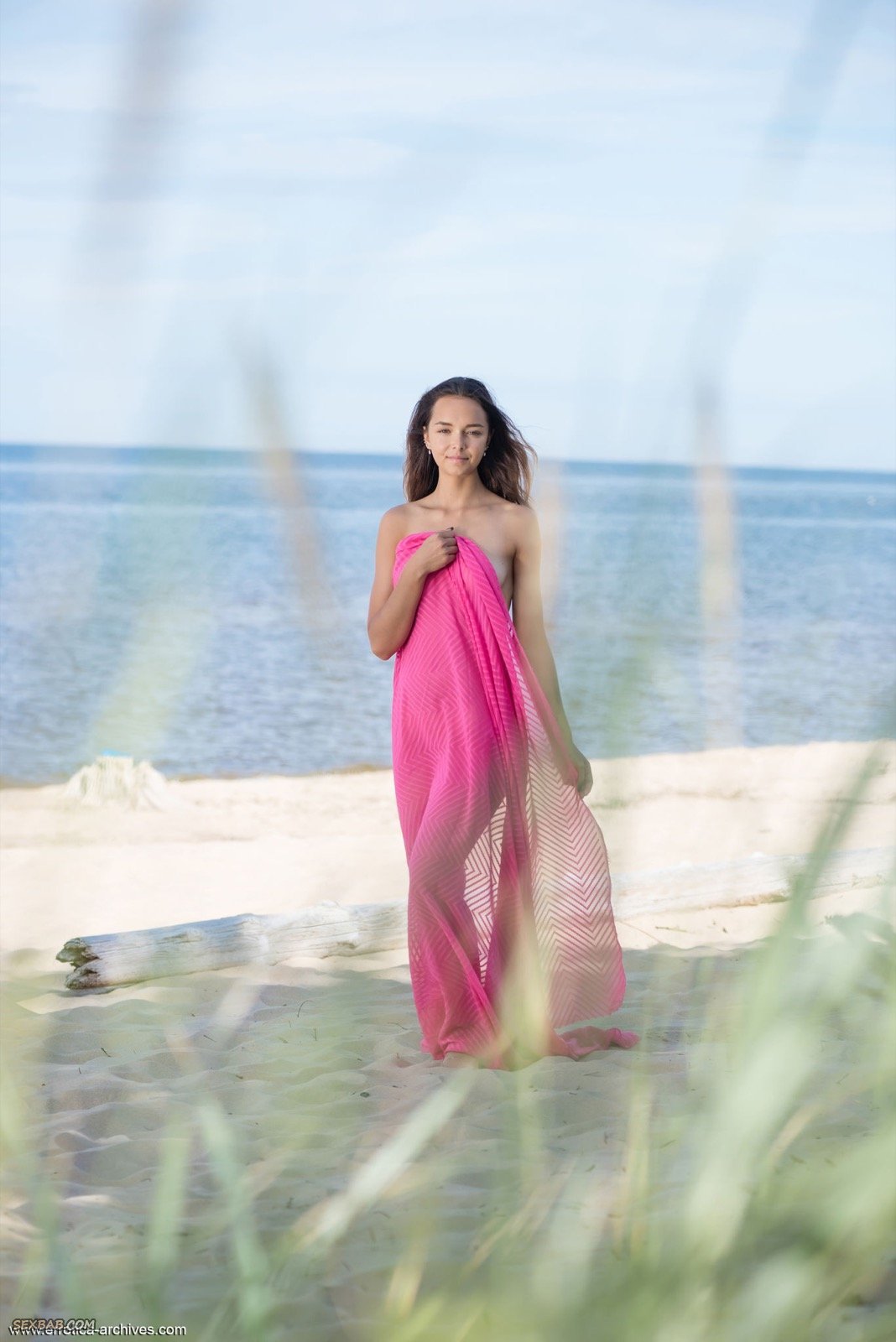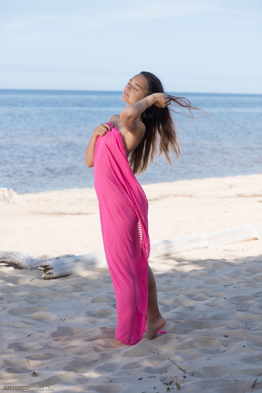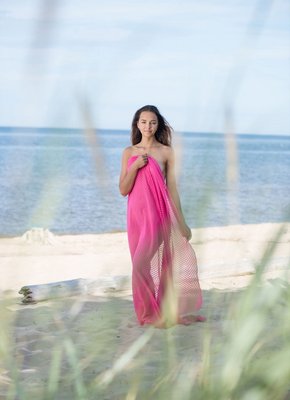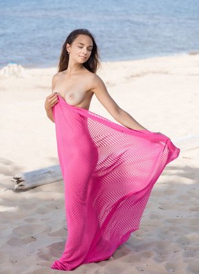Описание: Прикрывая розовой простынкой, обнаженная сексапильная красотка со стройной фигурой начинает эротично гулять на пляже, наслаждаясь свежим воздухом и поворачиваясь разными сторонами. В будущем очаровательная крошка с натуральными сиськами располагается на песке и поднимая ножки засвечивает гладко выбритую киску.