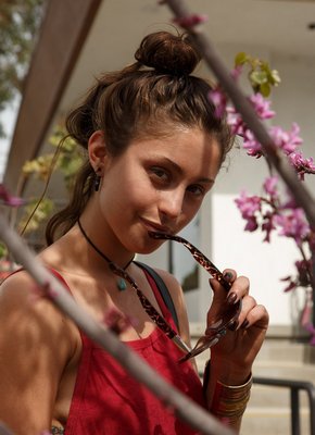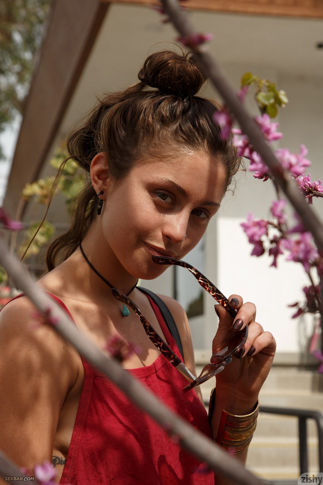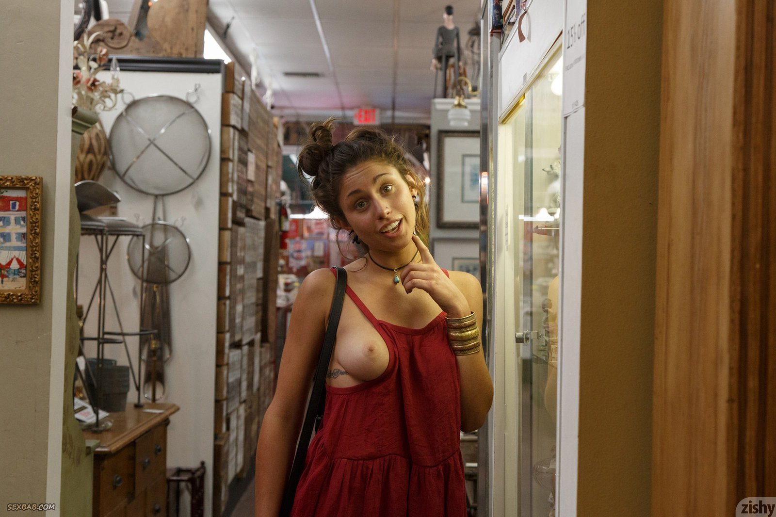 Описание: Молоденькая милашка с сексуальной попой, нарядившись в красное платье и белые трусики, начинает гулять на улице и в некоторых местах засвечивать части тела, для этого или раздвигая промежность или прогибаясь раком. В процессе стройняшке удается продемонстрировать обнаженные только натуральные сиськи.