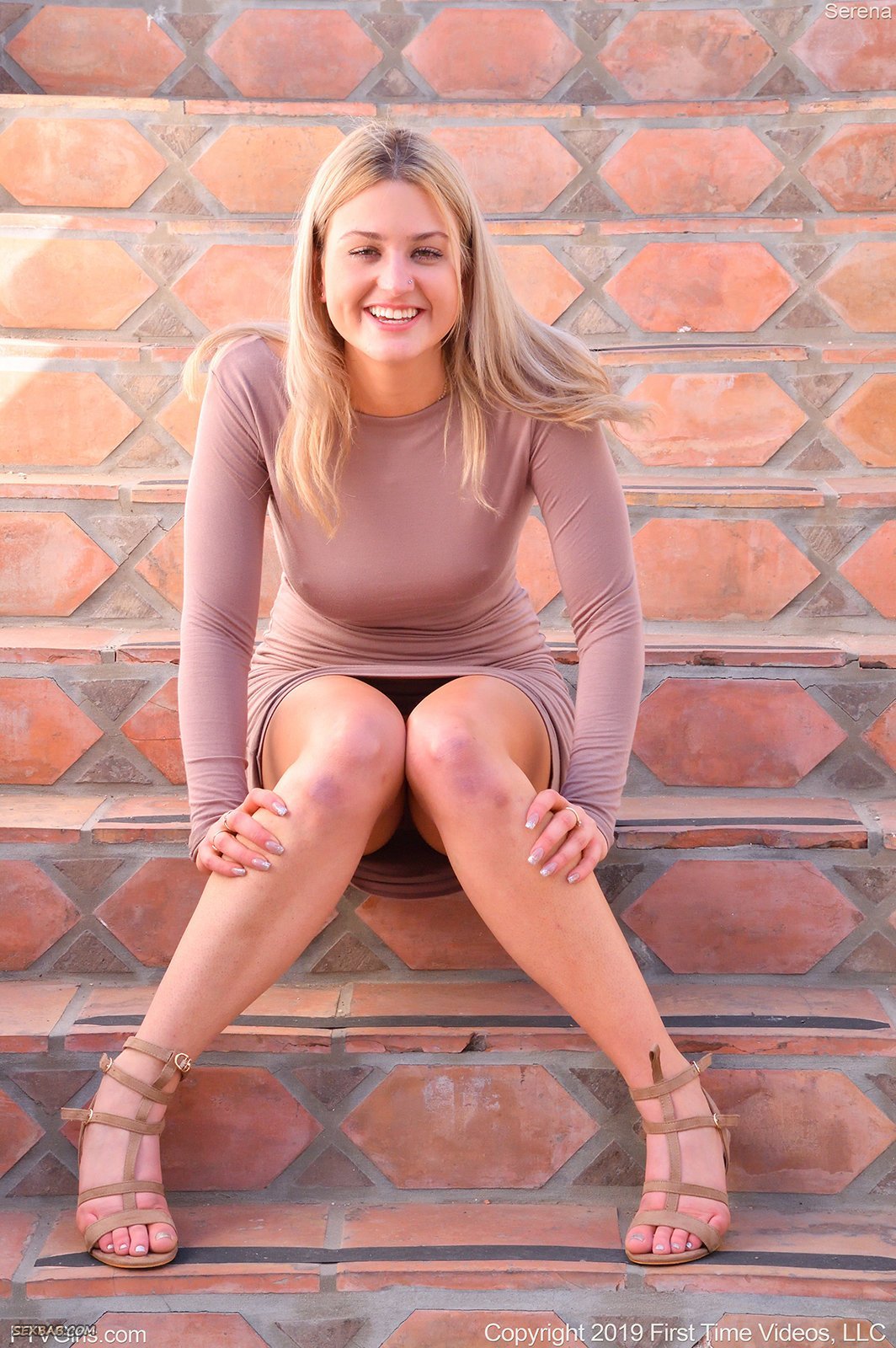 Описание: Озорная блондинка гуляет по городу в одном только платье на голом теле. Отыскав укромный уголок в тихом переулке, она снимает свой наряд и оказывается обнажённой. В столь откровенном виде перед нами появляются красивые титьки девушки и большая попа с аппетитными ягодицами. Кроме того, модель позволяет насладиться дурманящим видом её бритой киски.