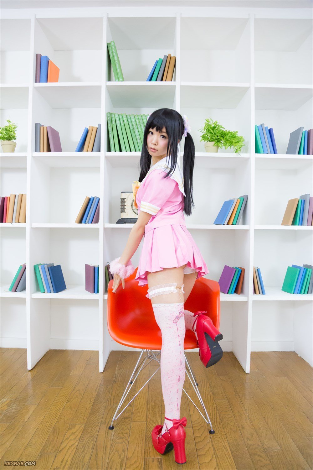 Описание: Нарядившись в сексуальный наряд с чулками, миниатюрная азиатка с двумя милыми хвостиками возбуждающе позирует и нежно поглядывает в камеру. Получая от процесса массу приятных эмоций, сексуальная молоденькая японка порой поворачивалась спиной и немного нагибаясь засвечивала белые трусики под короткой мини юбкой.
