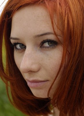Описание: Позируя перед фотокамерой на природе, рыжеволосая и полностью обнаженная милашка с красивыми глазами не стеснялась пробовать самые разные позы, порой довольно откровенные. Таким образом, стройная девушка продемонстрировала упругие сиськи и гладко выбритую письку, а присаживаясь на корточки акцентировала внимание на сочной попке.