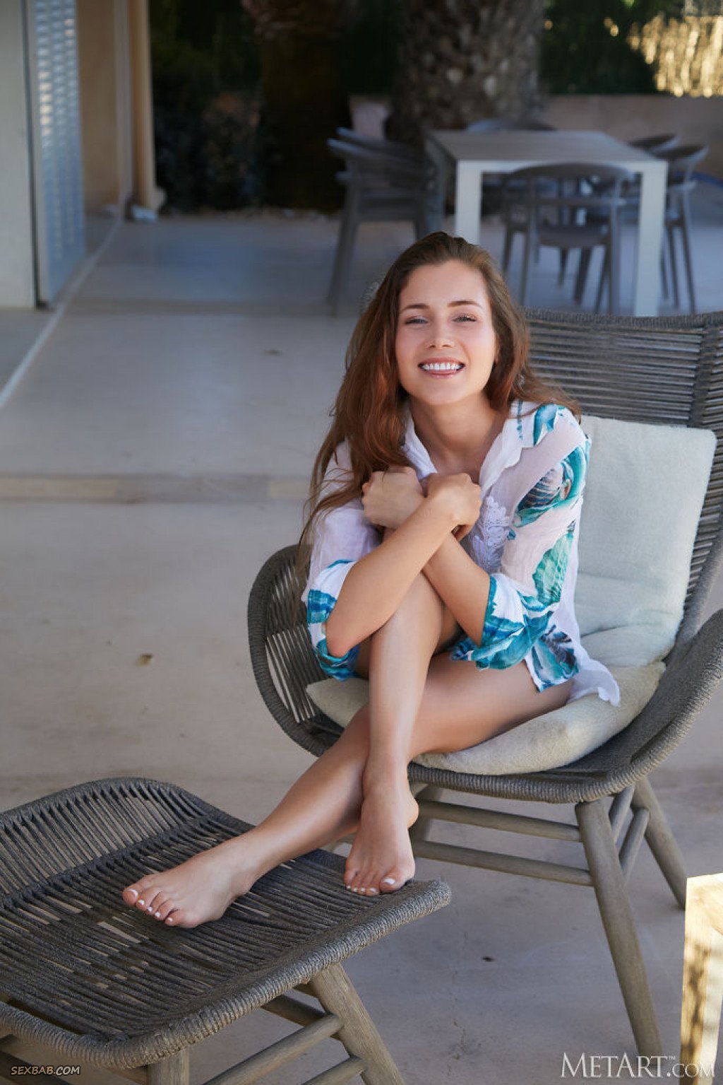 Описание: С большим удовольствием избавившись от всей одежды и развалившись голышом в кресле, развратная девушка с нежными миниатюрными прелестями трогает перед камерой свой пушистый волосатый лобок и как можно ближе выпячивает к нам свою бритую сочную киску между стройных разведенных ножек.
