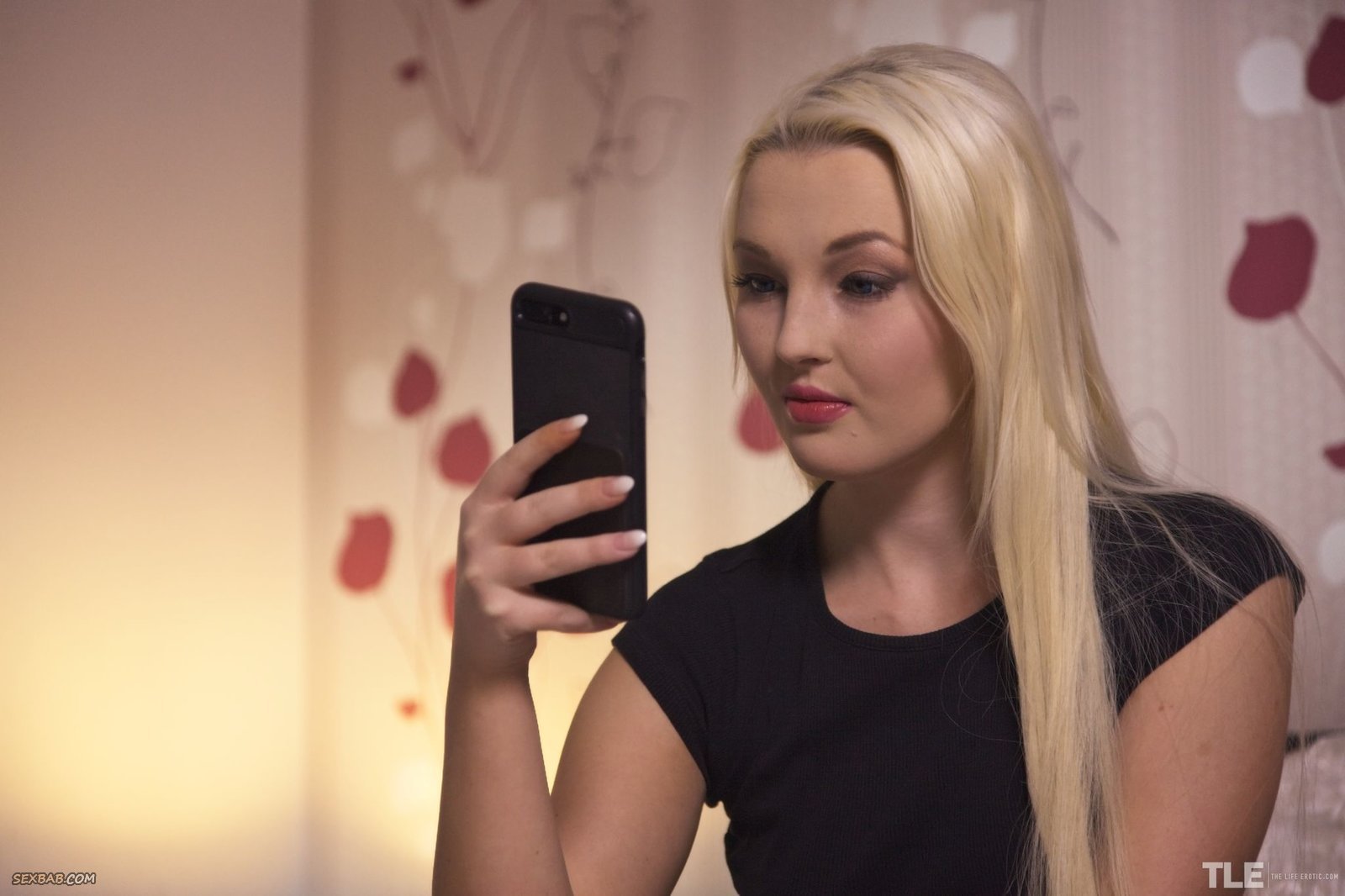 Описание: Сидя на кровати, очаровательная блондинка настолько возбудилась от прикосновений пальцами к промежности, что в будущем сняв колготки раздвинула ноги, продолжая удовлетворять бритую письку. Ощущая удовольствие, светловолосая девушка с маленькой грудью в дальнейшем вооружилась самотыком и проникла им во влагалище.