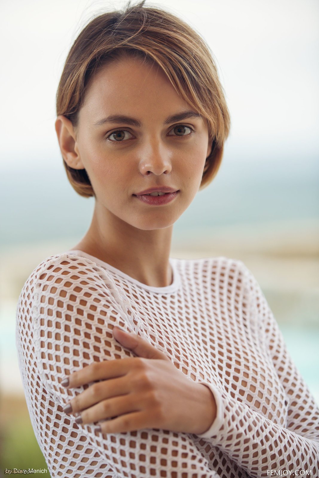 Описание: Эротично позируя на террасе у бассейна, молодая соблазнительная девушка с худенькой талией и упругими сиськами с красивыми сосками, скинув с себя сетчатый боди, устраивается на стуле и раздвигает промежность. Засветив бритую письку с гладким лобком, стройняшка игриво обхватывала себя руками и порой поднимала ноги, позволяя нам так же увидеть попку.