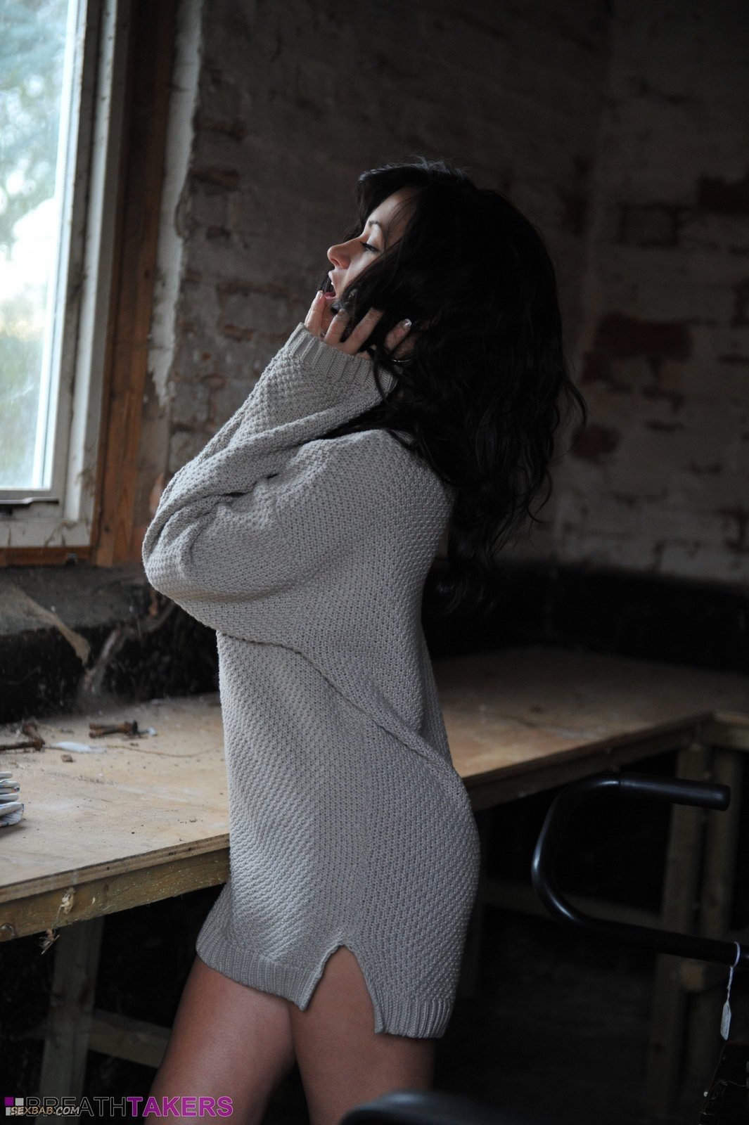 Описание: Накинув кофту на голое тело и надев высокие сапоги, сексуальная брюнетка без трусов начинает эротично позировать в заброшенном гараже. Чередуя возбуждающие позиции и раздвигая ноги молодая красотка подробно демонстрирует бритую письку с интимной стрижкой на лобке и плоский живот с пирсингом.