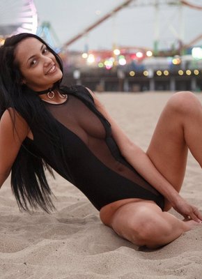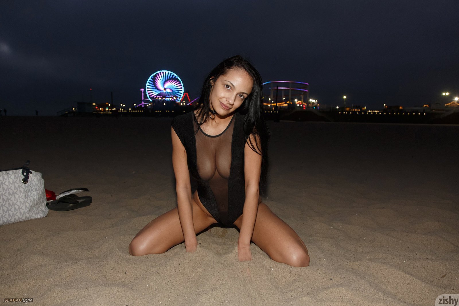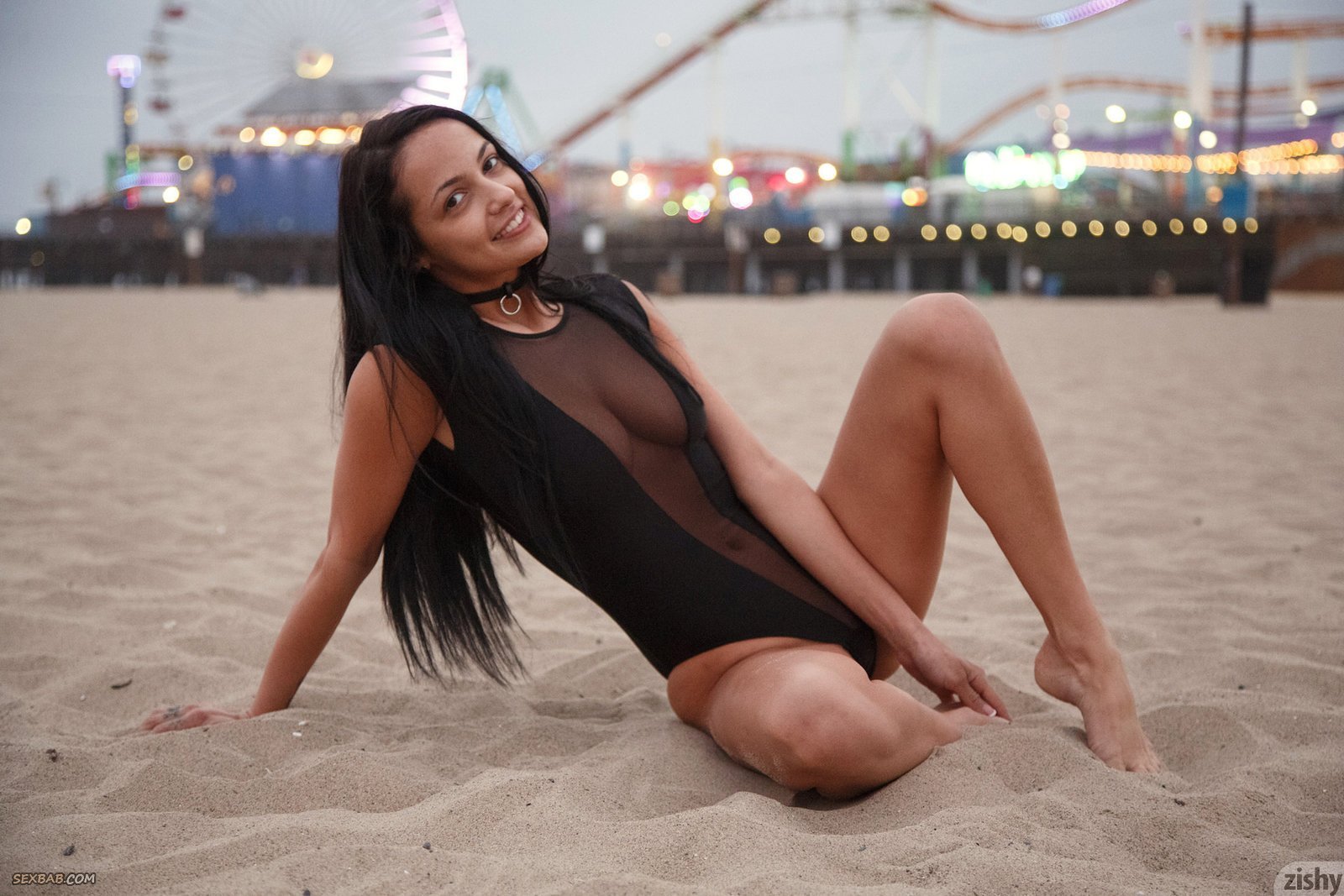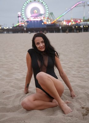 Описание: Оказавшись на пляже и начав эротично валяться в песке, нежная девушка в черном купальнике и невероятно красивой попочкой и ляжками старательно чередует разные возбуждающие ракурсы. В некоторых моментах стройная красотка немного засвечивала через одежду натуральные сиськи с торчащими сосочками.