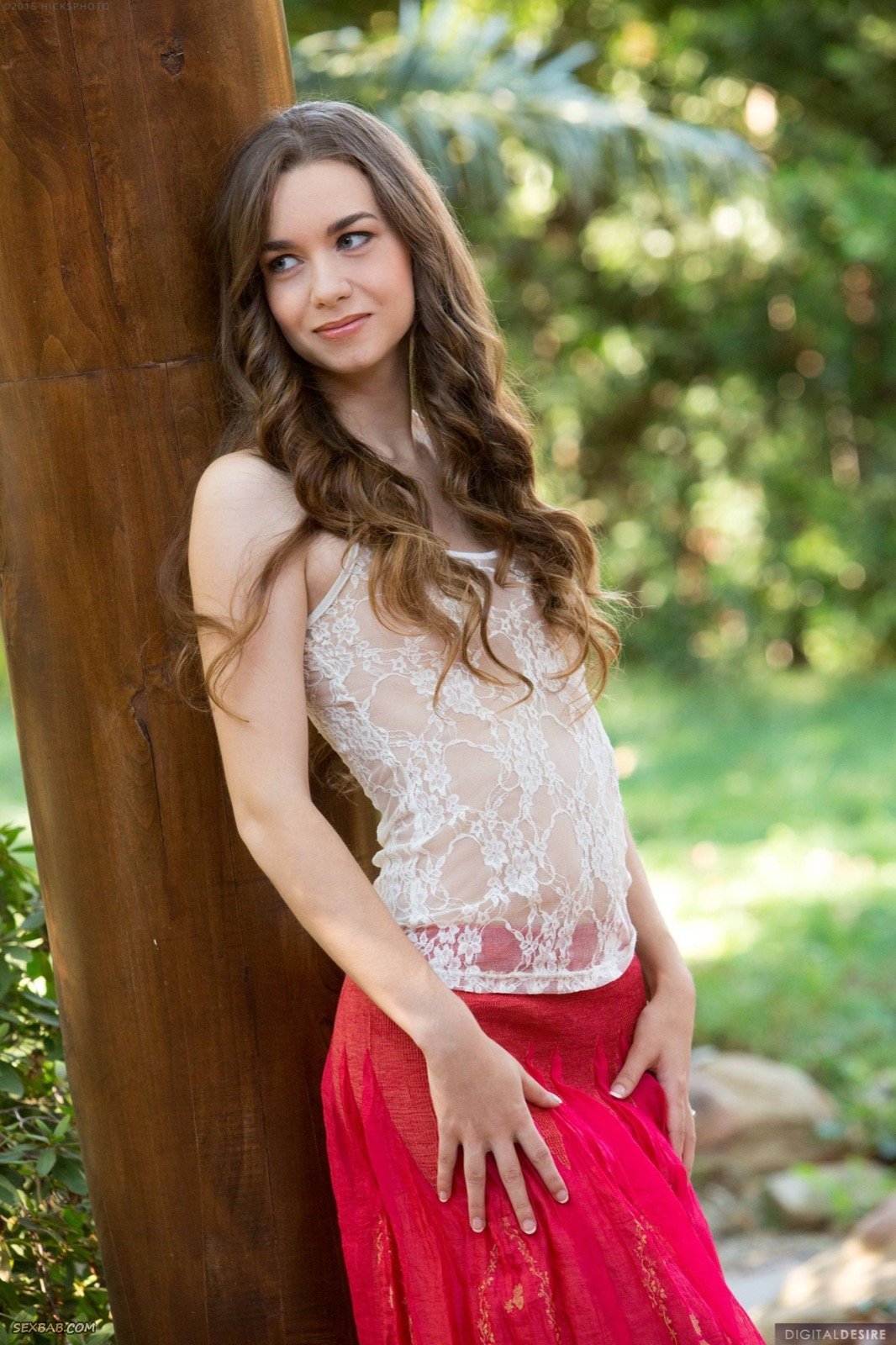 Описание: Нарядившись в прозрачную кружевную майку и длинную юбку без трусиков, симпатичная девица с вьющимися локонами начинает эротично позировать на улице, в процессе медленно снимая с себя всю одежду. Для начала высокая молодая крошка засвечивает бритую письку с волосатым лобком, а после упругие натуральные сиськи с возбужденными от происходящего сосочками.