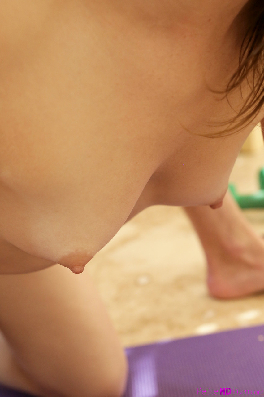 Миниатюрная девка Кристен Скотт трахается со своим лучшим другом после интенсивной тренировки (20 фото)