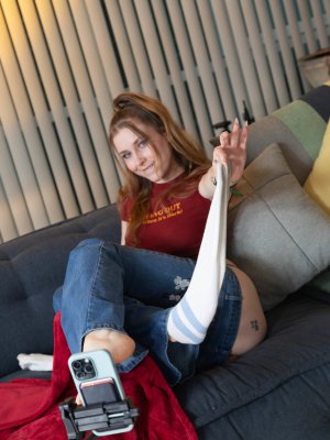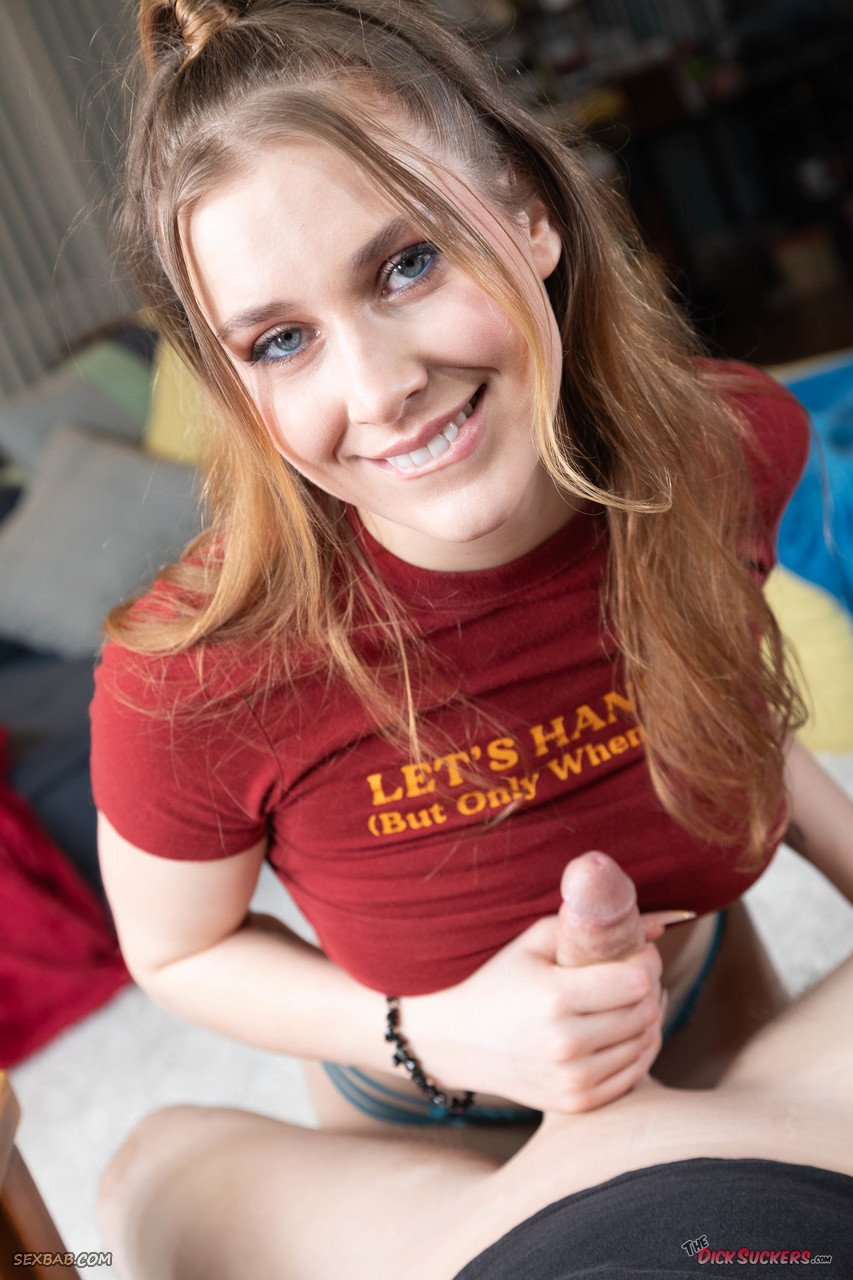 Голубоглазая девица трясет дойками, пока активно скачет у бойфренда на члене (15 фото)